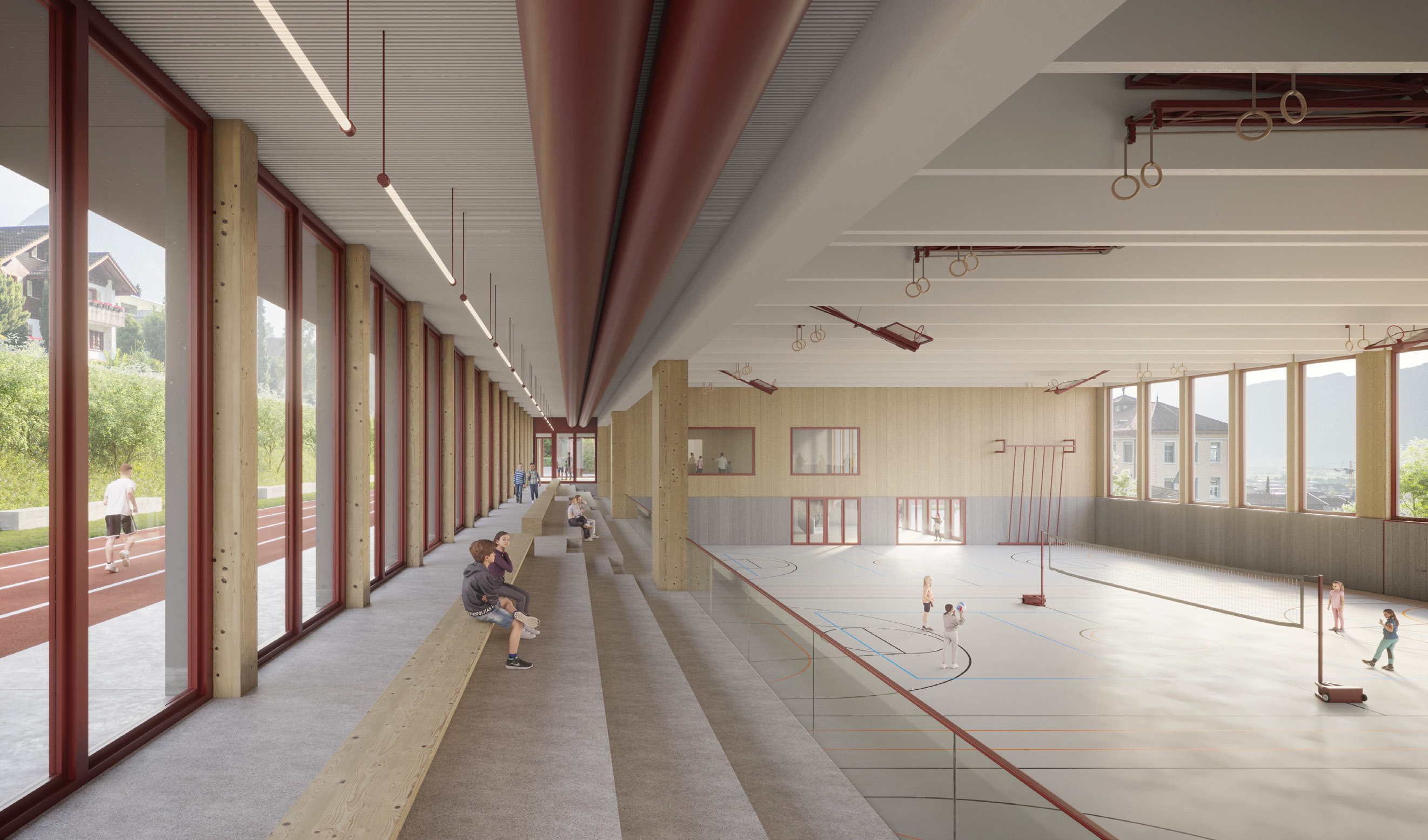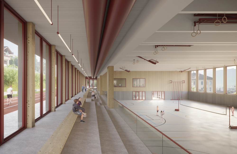 Die Schulanlage Buochs wird durch den Neubau einer modernen Doppel- bzw. Dreifachturnhalle erweitert. Das Projekt stärkt die schulische Infrastruktur, unterstützt das Vereinsleben und schafft Raum für sportliche wie kulturelle Grossveranstaltungen. Neben der eigentlichen Sporthalle umfasst der Neubau Tribünen, einen Mehrzweckraum mit Kiosk sowie hochwertige Aussen- und Freiflächen, die vielfältig genutzt werden können.